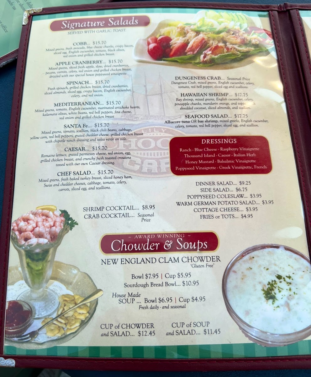 Dungeness Crab, mixed greens, English cucumber, celery, tomato, red bell pepper, sliced egg and scallions